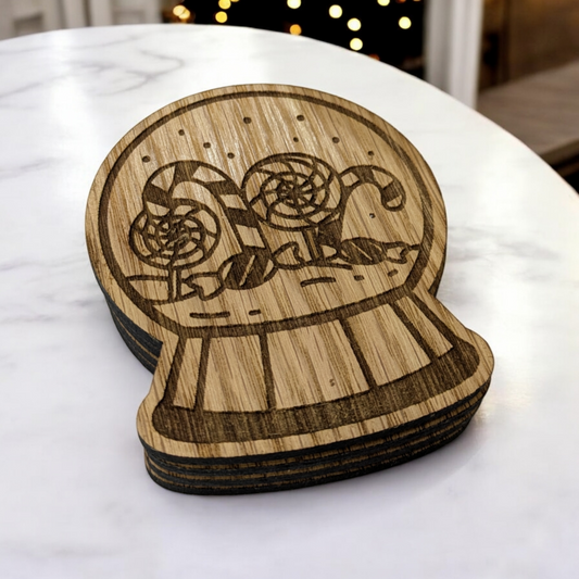 Oak Snowglobe Coaster Set