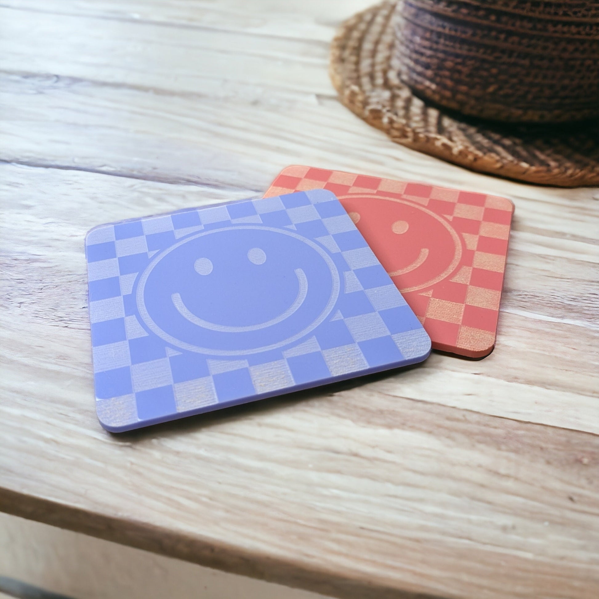 Looking for the perfect checkered print gift for your friends birthday? Or maybe your looking for the perfect retro coaster for your table or desk at work. Featuring our checkered print and happy face design. We have 7 colours to choose from to ensure they go with your aesthetic. Give your maximalist pop living room the protection it deserves!